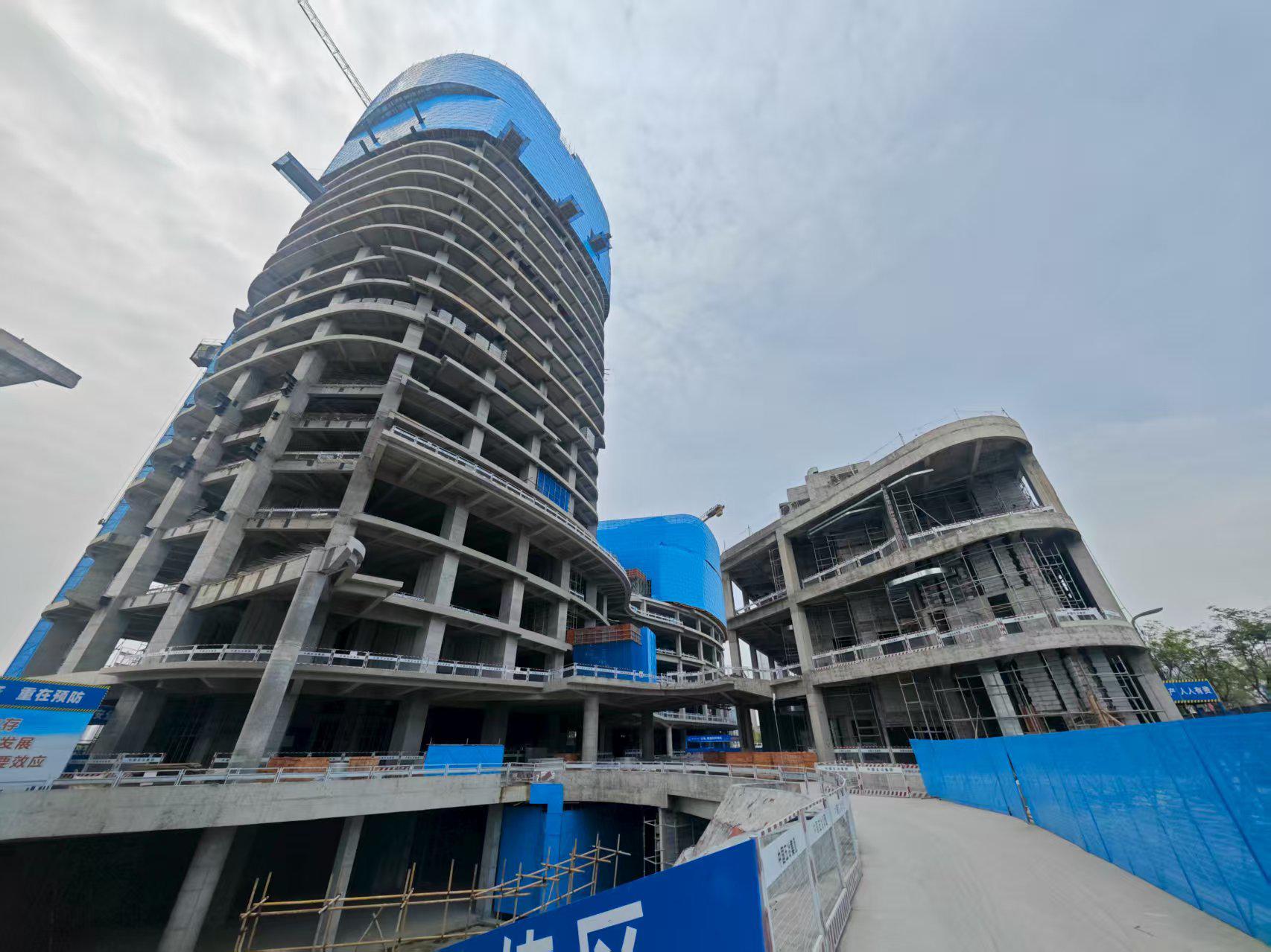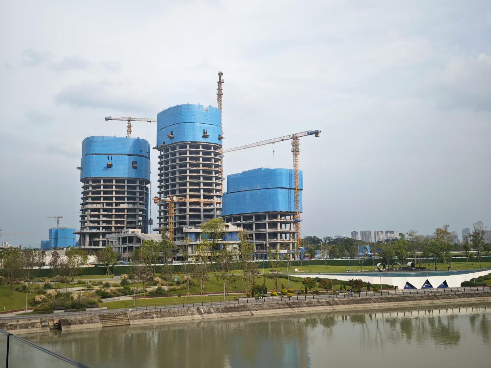 A competition won in 2021, the NBD Centre is nearing topping up. Located at Guixi Ecological Park within the Jiaozi Park Business District in Chengdu, the 120m high twin towers overlooks the Jinjiang River and the Chengdu Skyline beyond.
