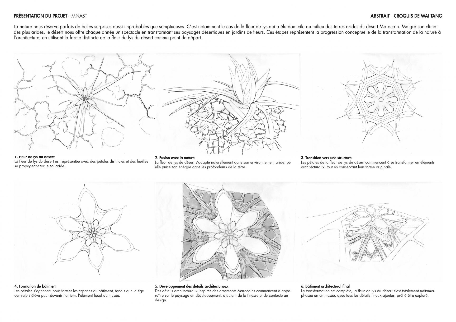 At the heart of our architectural design lies the evocative concept of the Moroccan desert flower, symbolized by the majestic fleur-de-lis. Like the roots of this flower that reach deep into the arid soil, our museum also delves into the depths of history, revealing the buried layers of past civilizations. This visual metaphor guides visitors to explore the foundations of Moroccan society, connecting them intimately to their ancestors and heritage.