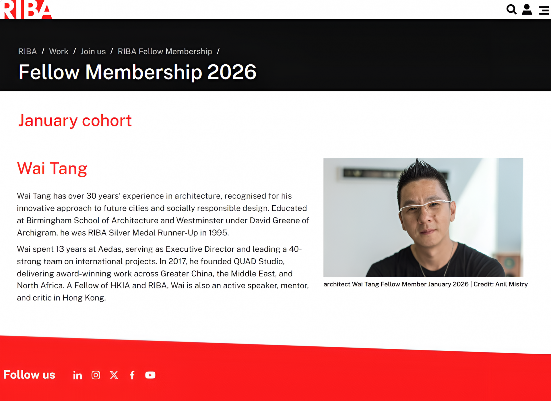 RIBA Welcomes Wai Tang into the RIBA Fellowship