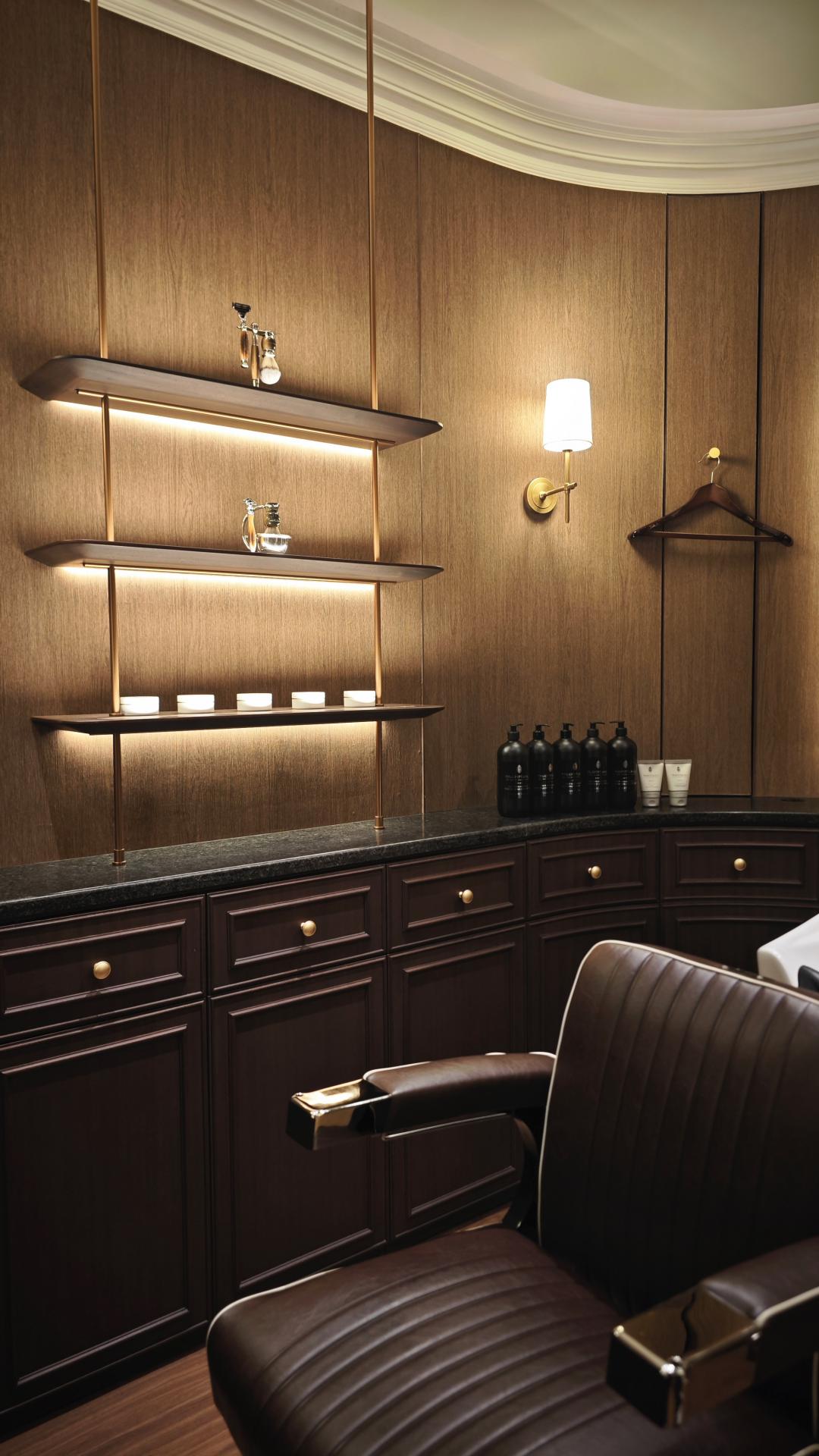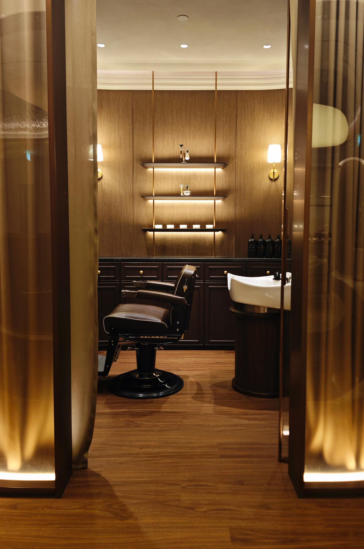 For the utmost in privacy and comfort, individual VIP hair salon rooms are designed to eliminate all distractions. Each room features a fully adjustable Takara Belmont barber chair, equipped with state-of-the-art backwash facilities, allowing guests to enjoy a full hair treatment without ever leaving their seat.